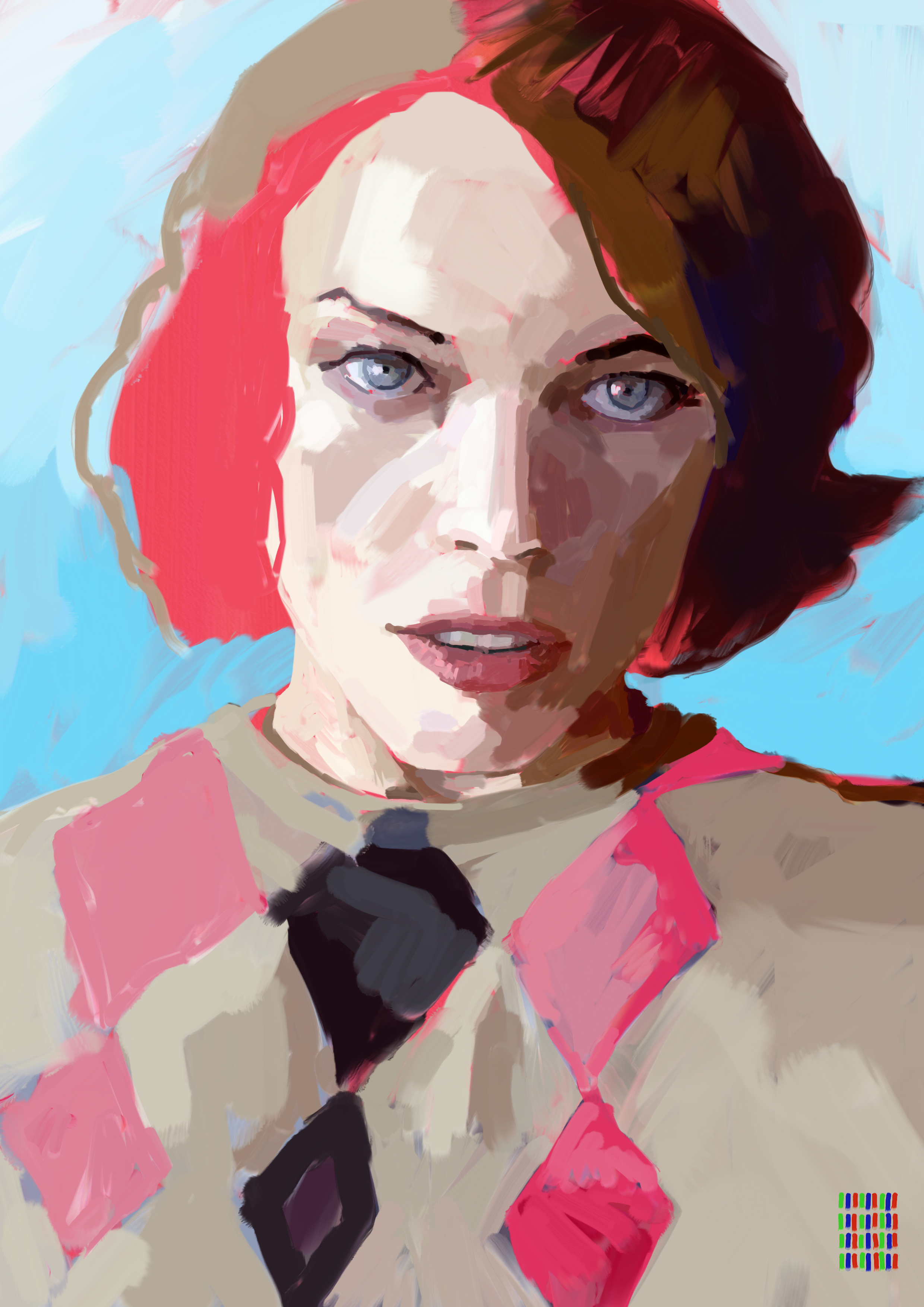 Portraits „Gagagertie“, Portrait of Lady Gaga and Gertie the Dinosaur, rgb-pixel (digital painting), 2013 Portrait of Milla Jovovich, rgb-pixel, Nina Schneider, 2013 digital, dinosaur, Gaga, gertie, illustration, Jovovich, Lady, Milla, nina, painting, pelé, Regensburg, schneider, the Illustration 9. August 2013 nina
