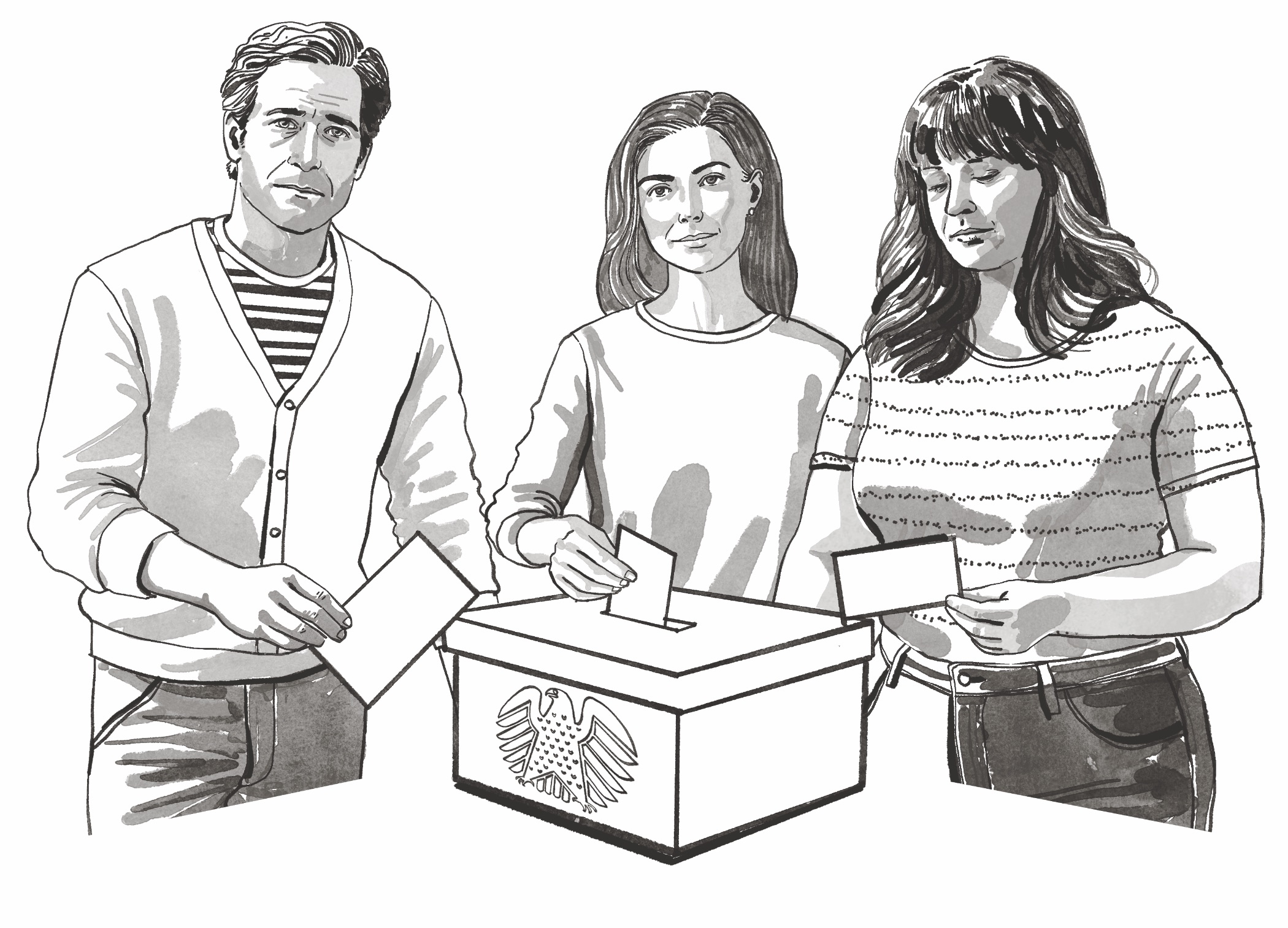 Illustrationen für die Apotheken Umschau zum Thema Gesundheitswesen im Kontext der Bundestagswahl 2025